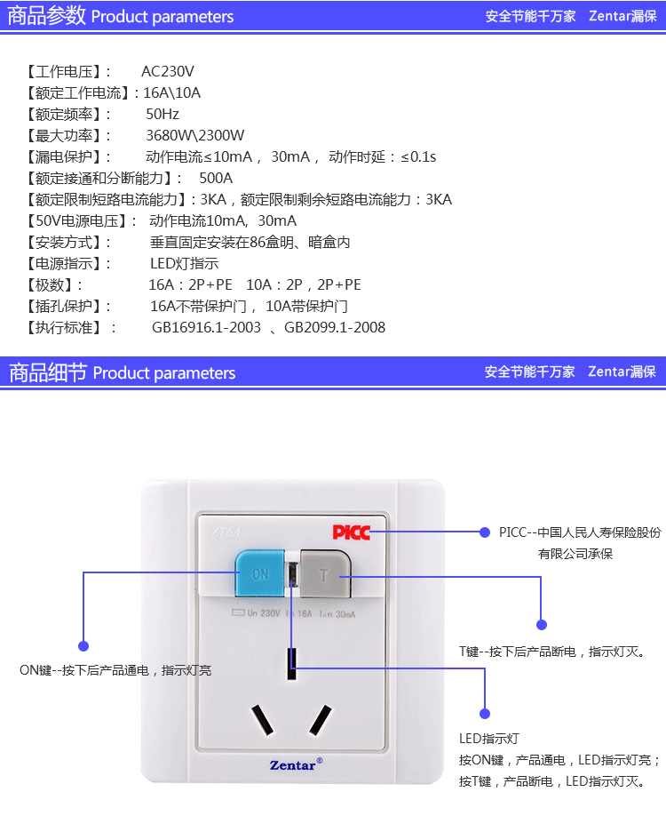 漏電保護(hù)墻壁型開關(guān)ZT6-10A/16A